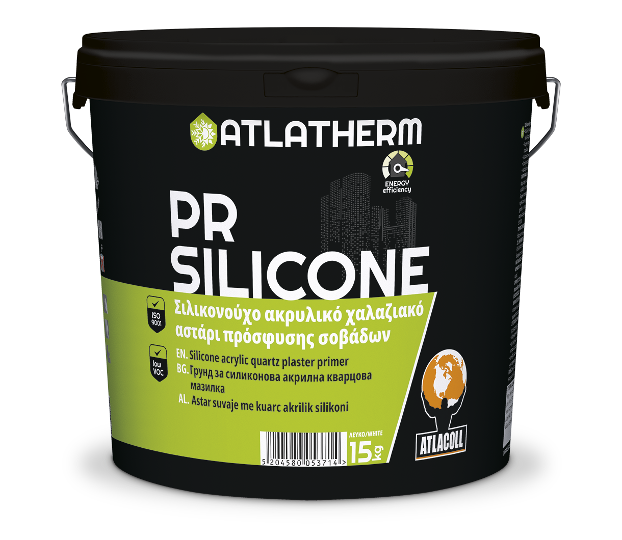 Αφού στεγνώσει η κόλλα και το υαλόπλεγμα, εφαρμόζουμε το σιλικονούχο αστάρι ATLATHERM PR SILICONE. Το αστάρι αυτό χρωματίζεται συνήθως στην τελική απόχρωση του σοβά . Αυτό το στάδιο διασφαλίζει ομοιόμορφη απορρόφηση και άριστη πρόσφυση του τελικού σοβά.