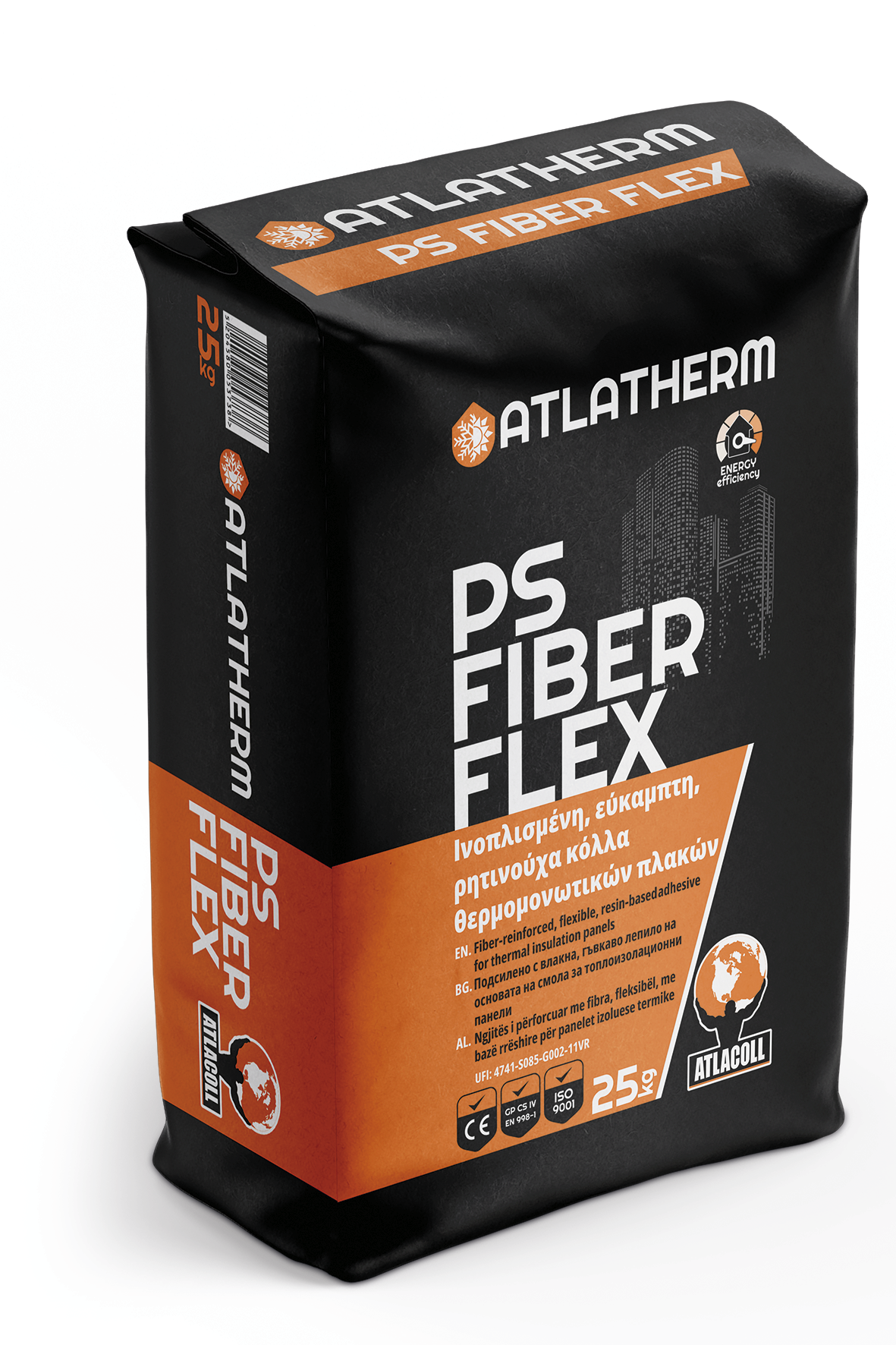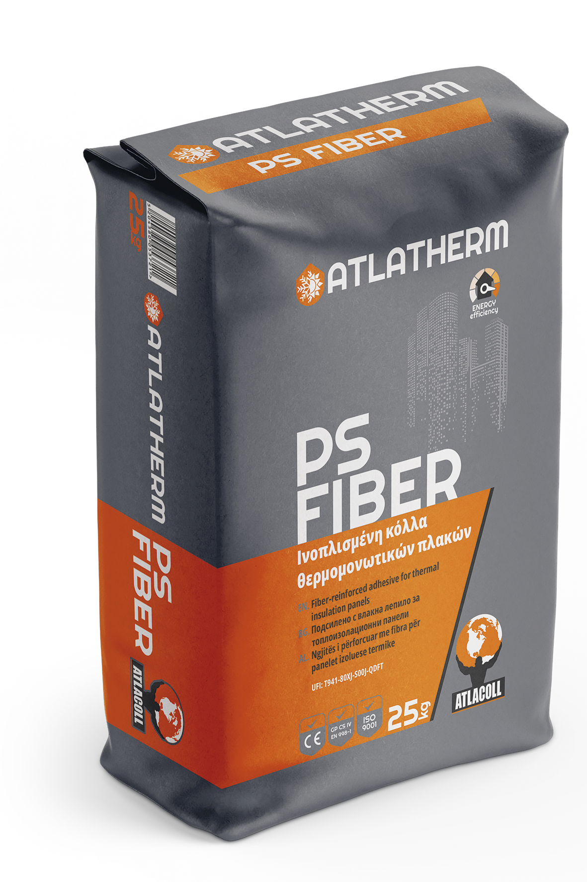Αναμίξτε την κόλλα ATLATHERM PS FIBER ή PS FIBER FLEX με νερό και εφαρμόστε την στις θερμομονωτικές πλάκες. Τοποθετήστε τις στον τοίχο πιέζοντας ομοιόμορφα. Βεβαιωθείτε ότι εφάπτονται σωστά, χωρίς κενά.
